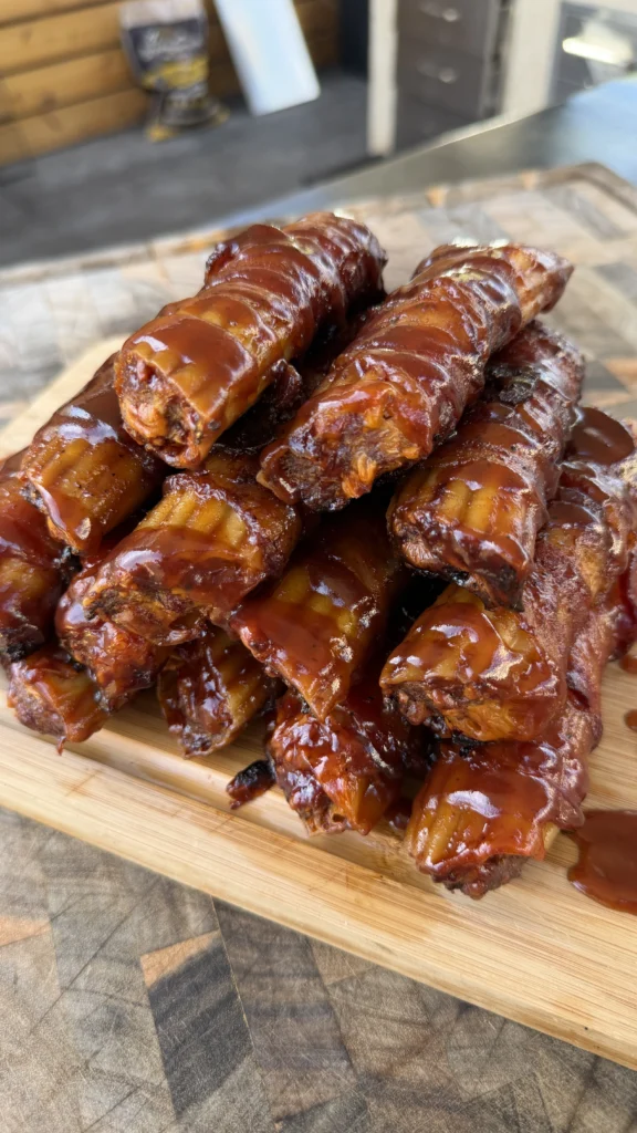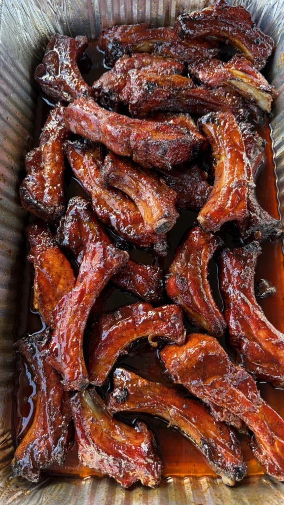 Dr Pepper party ribs use 2 racks baby back ribs with membrane optionally removed, cut between every bone into individual ribs before cooking, then seasoned generously on all sides with sweet BBQ seasoning and rested at room temperature for 15-20 minutes. Smoke at 275°F for 2 hours to build bark on all surfaces. While ribs […]