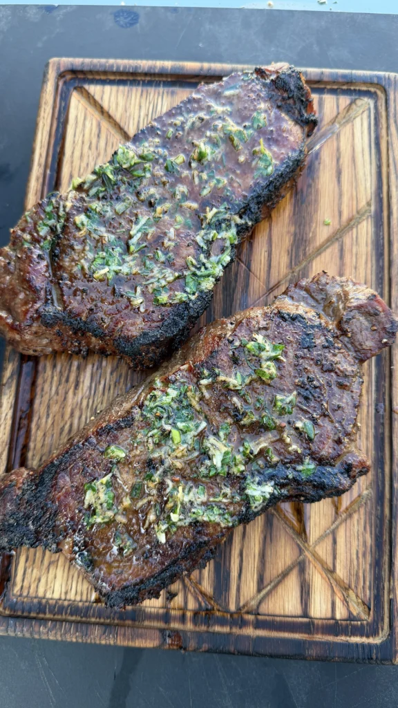 Grilled Strip Steaks with Garlic Herb Compound Butter