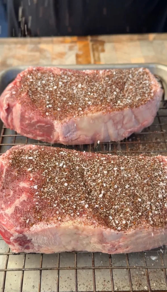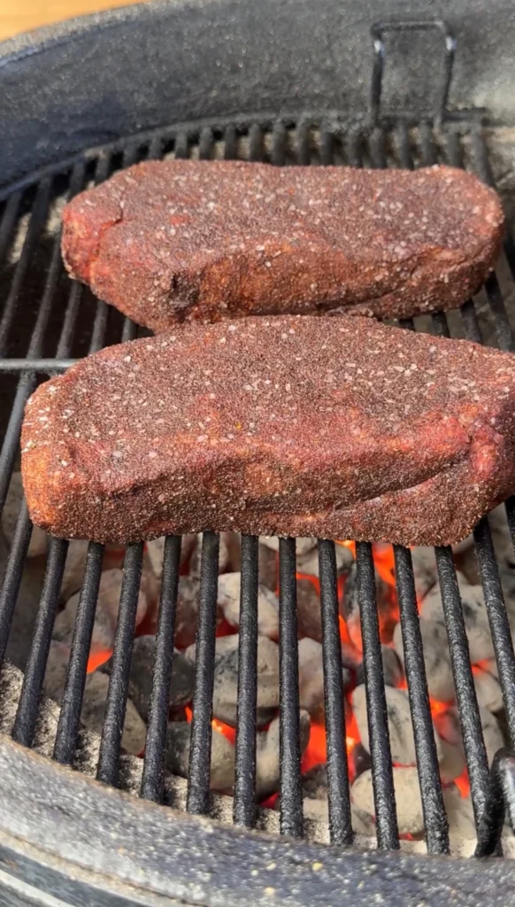 Pat the steaks completely dry with paper towels. Any moisture on the surface will prevent the rub from sticking properly and interfere with getting a good sear. Don’t skip this step – it makes a big difference.