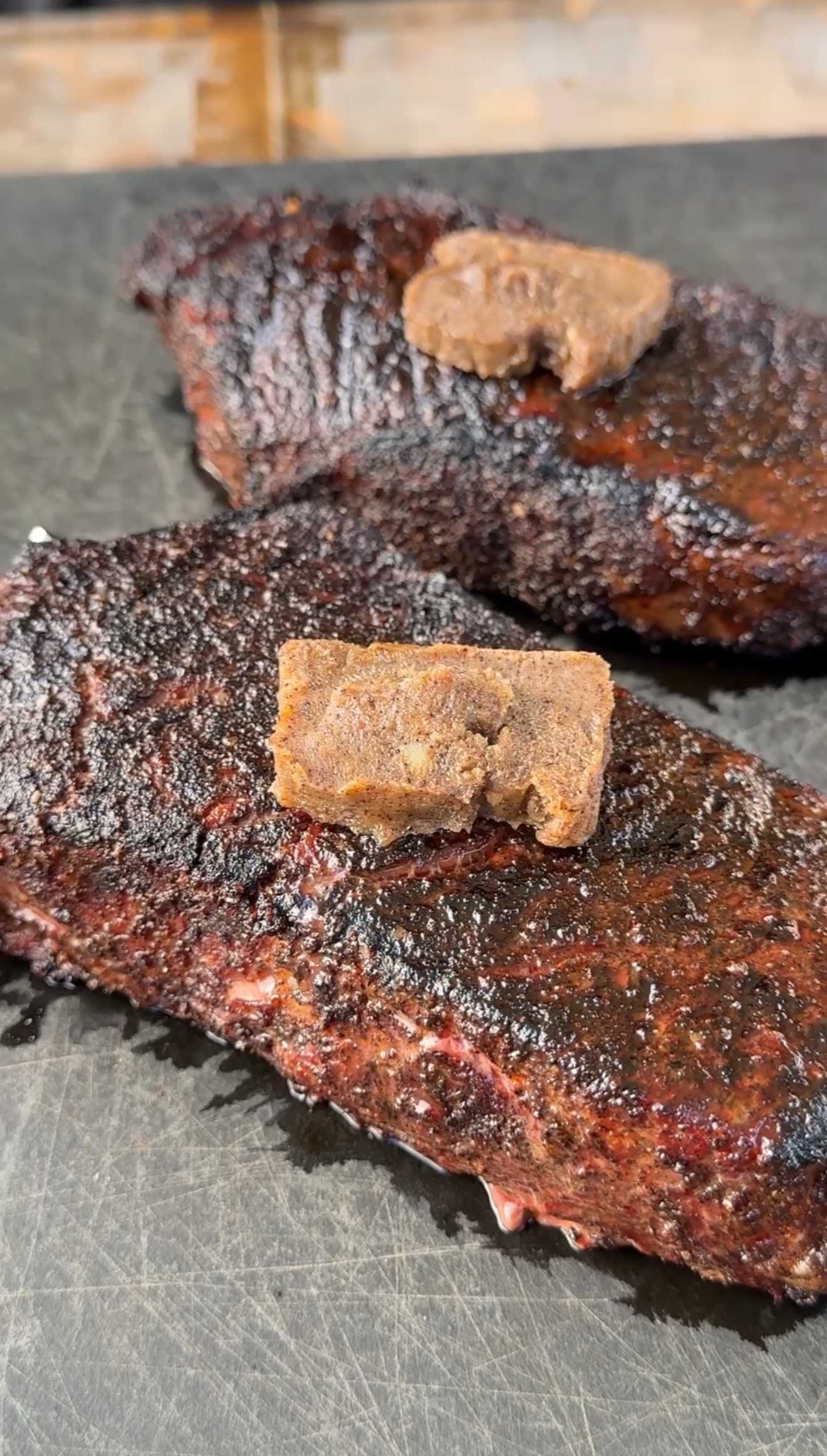 - Top hot steaks with compound butter slices and rest 5 minutes