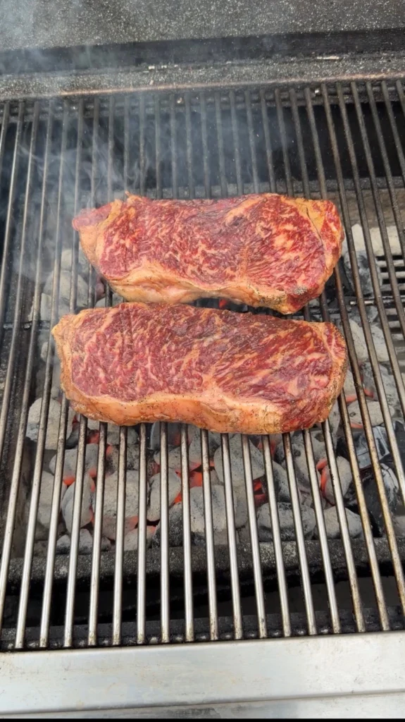 Remove the marinated steaks from the bag or dish, letting excess marinade drip off but don’t wipe them dry – that sticky coating will caramelize beautifully. Place the steaks directly over the hottest part of the coals on your two-zone fire. You should hear aggressive sizzling immediately. Close the grill lid briefly if needed to create an oven effect, but open it if flare-ups become excessive.