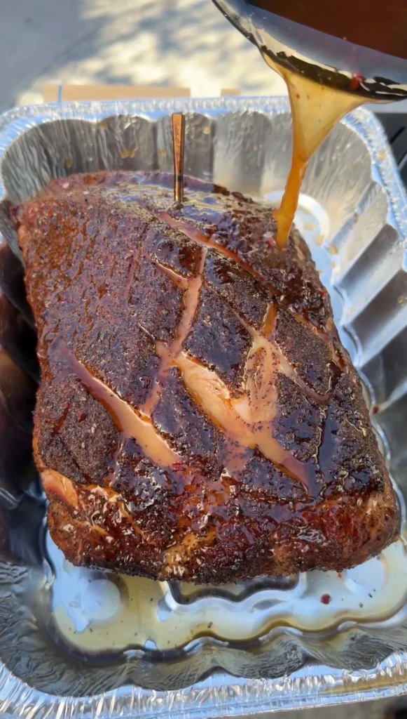 The braising effect tenderizes the meat faster. The moisture prevents surface drying. The pork stays wet throughout cooking. When you unwrap it, the surface is soft rather than crusty. The bark that developed during the initial smoking phase softens considerably.