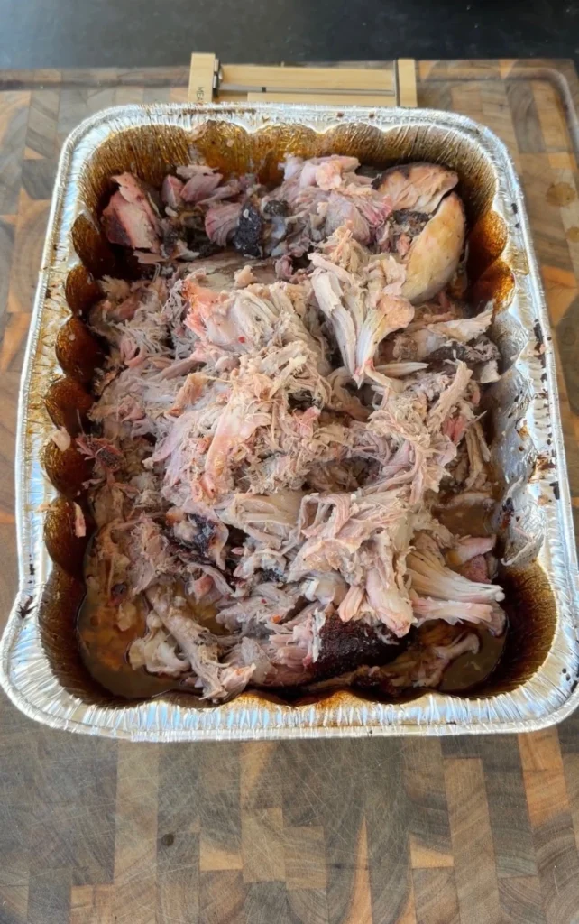 Don’t skip the rest. Pork pulled immediately after cooking releases more juice. You lose moisture you want to keep in the meat. The texture is also slightly mushy. The 30-minute rest improves both moisture retention and texture.